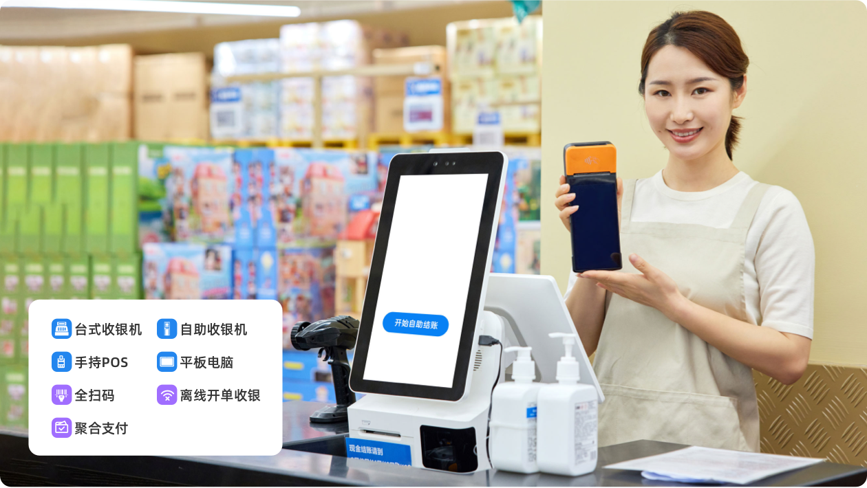 · 极速收银:全扫码/离线收银/聚合支付
